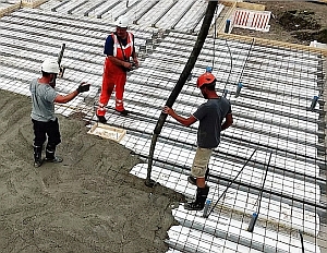 broodjesvloer, polystyreen broodjes tussen de betonnen t-balken (nog zonder wapening op de broodjesvloer: ![]() |
