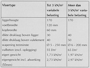 broodjes van polystyreen broodjesvloer met polystyreen, druklaag , wapening, werkende breedte, hoogte balk+druklaag (vbi): |