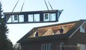 prefab dakkapel, in 1 dag geplaatst, ook zeer brede dakkapel mogelijk; klik voor groter (ruiter dakkapellen): ![]() |