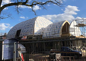 prefab dak van dakelementen in hout met ingewikkelde vorm en goede isolatie; klik voor groter (eemshout): ![]() |