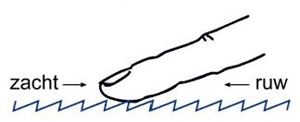 | de voelrichting bepaalt mede de gewaarwording van een materiaal:  |