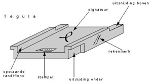 tegula; klik voor groter (basisrapportages archeologie nr 19 utrecht) (voor signatuur en stempel zie graffiti en merkteken): ![]() |