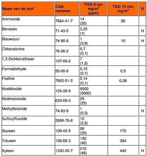 Eng. time weighted average (TWA); korte-termijn TGG is short-term exposure limit (STEL)