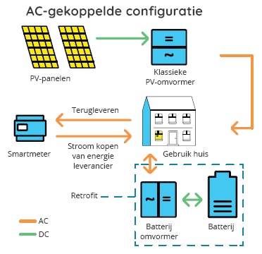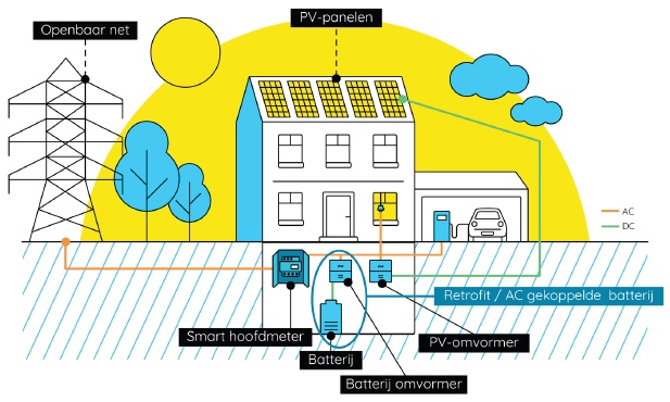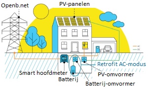 Een retrofit systeem zorgt ervoor dat een bestaand systeem van zonnepanelen en omvormer, gebaseerd op wisselstroom (AC), kan worden gekoppeld aan de batterij(omvormer).