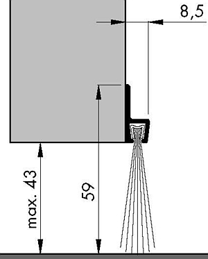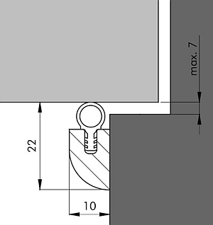 | opbouw, tochtprofiel vergelijkbaar met de tochtlat hierboven maar van kunststof en minder dik (5 mm) terwijl toch 7 mm wordt overbrugd; sluit iets minder goed dan de houten versie met ronde rubberen profiel; klik voor een grafische weergave van het profiel (elton model pts):  |