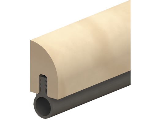 | opbouw, authentieke houten tochtlat met rubber profiel, overschilderbaar, bovenaanzicht; het ronde rubberen profiel sluit de wind goed af!; in elke kleur te lakken; zeker bij bijvoorbeeld een 1930-er jaren-huis past deze authentieke lat uitstekend; klik voor een grafische weergave van het profiel; elton model hts):  |