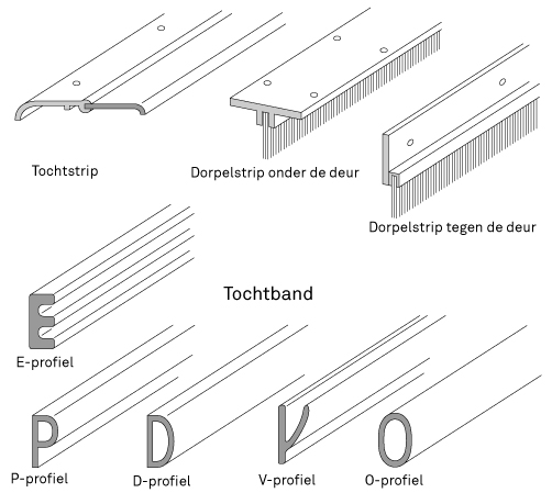 | soorten "tochtstrips"; klik voor groter (karwei):  |
