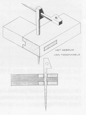een manier van het tijdelijk gebruik van toognagels bij een pen-gat-verbinding: ![]() |