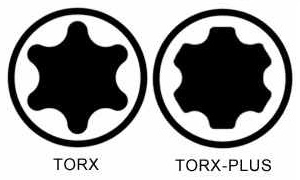torx en torx-plus, vorm van de schroefkop; meest gangbaar is de linker torx:![]() |