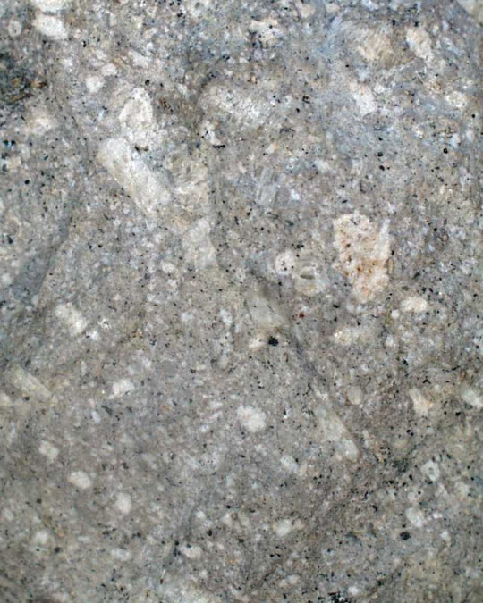 "Het gesteente kenmerkt zich door tot circa 5 cm grote fenokristen van sanidien."