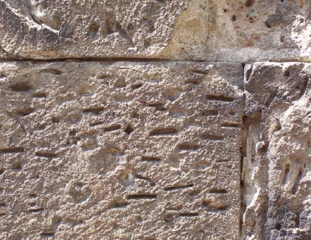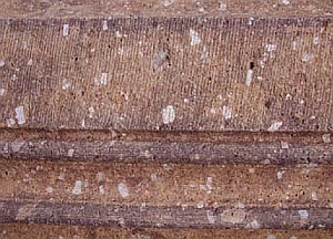 - Trachiet blijkt soms gevoelig te zijn voor randspanningen. Grote schilfers die rond de voegen van de steen afspringen, zijn daarvan het symptoom.
