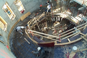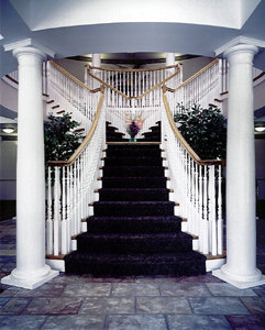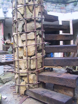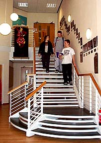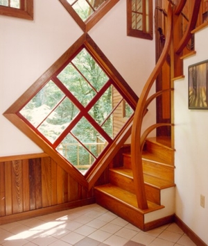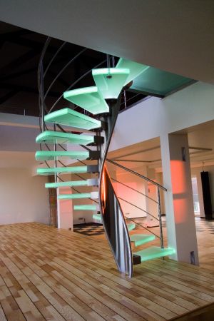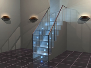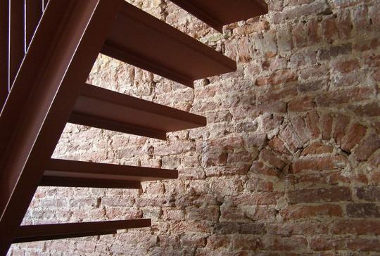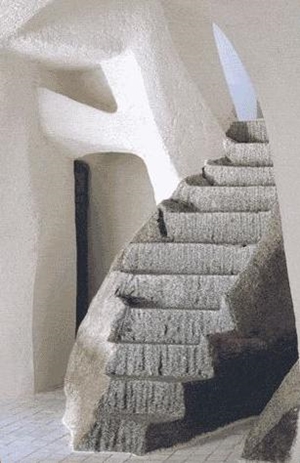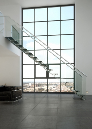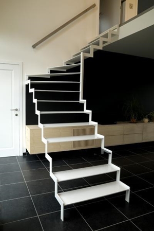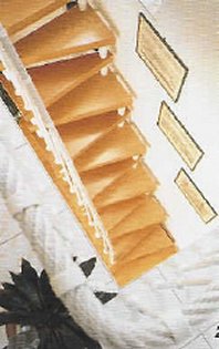 een bijna zwevende trap; verstevigd met stalen kabeltjes (noram): ![]() |