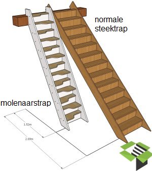 zogenoemde molenaarstrap (links op de afbeelding) van architect daan bakker in zijn tiny house (tiny-a): ![]() |