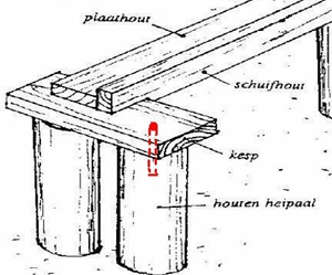 treknagel (rood aangegeven) bij een kesp bij de amsterdamse paalfundering: ![]() |