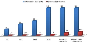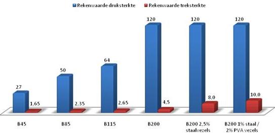 ontwikkeling druksterkte en treksterkte bij verschillende sterkteklassen beton; klik voor groter [N/mm2]: ![]() |