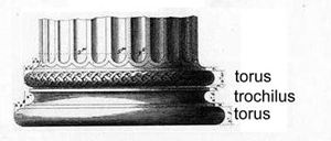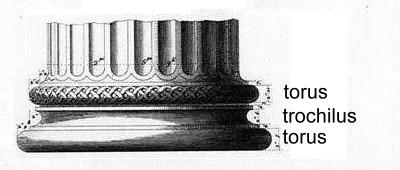 attisch of ionisch basement bestaat uit voetplaat (niet getekend), torus, trochilus en torus: ![]() |