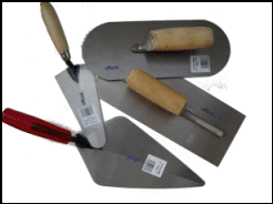| pleistertroffel met spitse punt en rechte schouders | bandtroffel of stukadoorstroffel, recht blad, ronde schouders |
