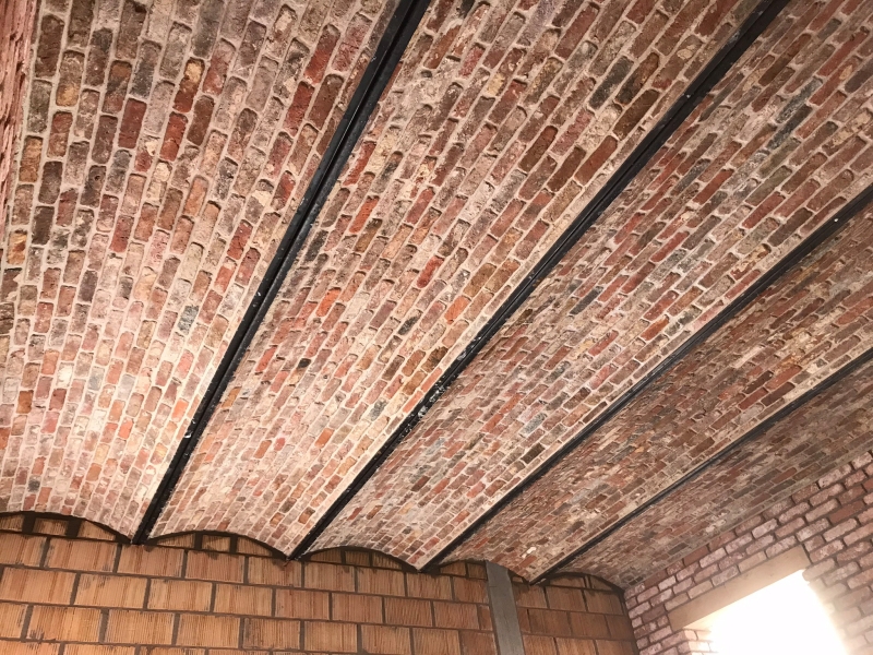 tweemaal een prefab gemetseld troggewelf, tamburogewelf (ploegsteert): ![]() |