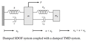 De eenvoudigste tuned mass damper bestaat uit een massa (groot), een veer en een demper. Dit wordt een Single Degree of Freedom Linear Oscilator genoemd (SDOF).