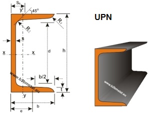- de UNP-balk/UPN-balk (naar U-NormalProfil, echter wonderlijker meestal UPN genoemd) heeft schuine flenzen; de meest gebruikte soort U-balk.