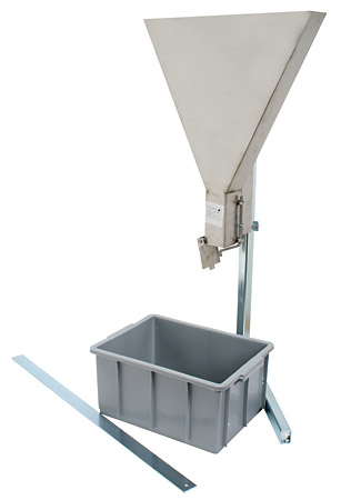 De bovenkant van de V-trechter moet recht zijn om de betonspecie goed af te kunnen strijken. De trechter moet van metaal zijn, niet gevoelig voor cement of roest, en met gladde wanden.