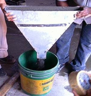Zie ook box-test, J-ring-test, zetmaat, trechtertijd. Eng. V-funnel-test; vloeibaarheid is flowability