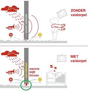 nut van een valdorpel, tegenhouden koude, vocht, geluid en rook (tekening van merk cce, valdorpelshop): ![]() |