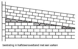 2. Een varken is een steen die pasgemaakt is om het geheel weer waterpas of recht te krijgen.