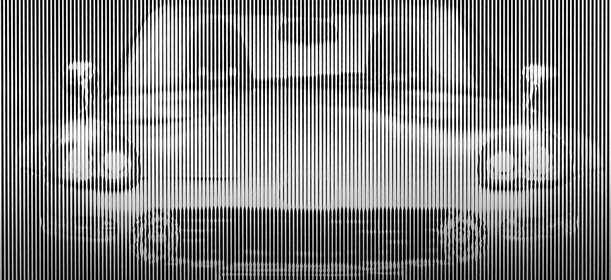 Poth. Bij een vectogramm wordt een (kleuren)foto omgezet in 256 grijstinten en in dunnere en dikkere lijntjes vergroot overgezet en ingefeesd op de gewenste gevelpanelen.