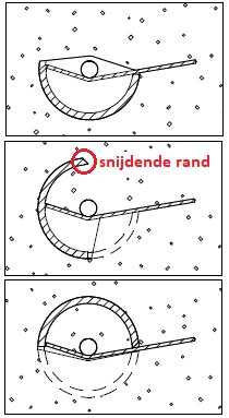 sluiten van de "klep" (het scharnierend deel) van de veenboor, het uitstekende deel heeft een snijdende rand (royal eijkelkamp): ![]() |