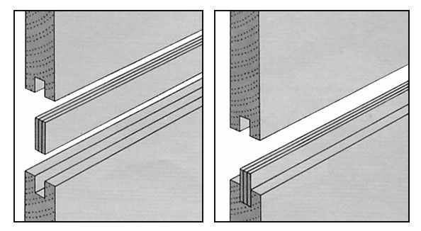 Bij doe-het-zelven: maak de groef een heel klein beetje breder dan de veer, zodat de houtlijm een goede hechting mogelijk maakt.