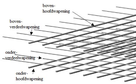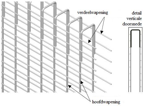 Verdeelwapening omvat de stalen funderingsstaven die loodrecht op de hoofdwapening aangebracht zijn: