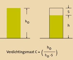 - de verdichtingsmaat C = (oorspronkelijke hoogte ho) / (gemiddelde hoogte