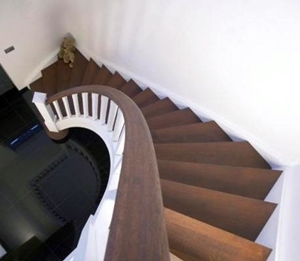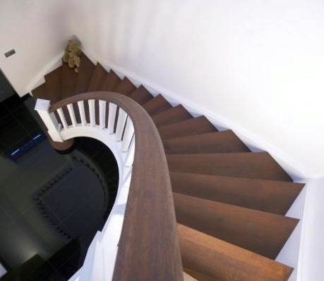 treden, d.w.z. een trap met treden waarvan de voorkant niet evenwijdig loopt aan de voorkant van de daarboven gelegen trede.