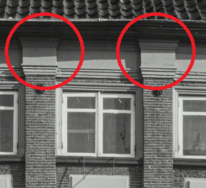 verkropte kroonlijst bij pilasters, grote oost 2, hoorn; klik voor de volledige afbeelding (monumentnummer 22384, beeldbank cultureel erfgoed): ![]() |