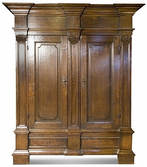 een verkropte kap bij een antieke houten kast; ook het onderste gedeelte van het lichaam van de kast is verkropt (harrie rombouts & zonen antiquiteiten en meubelmakerij): ![]() |