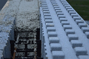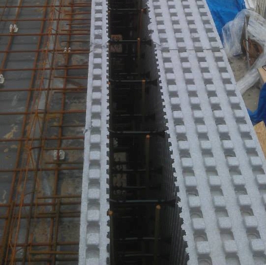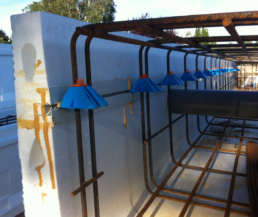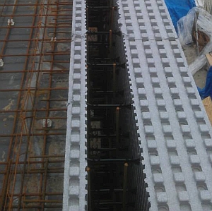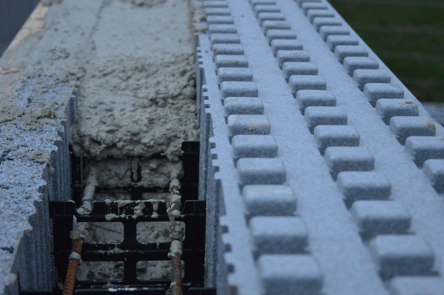 Het polystyreen beperkt koudebruggen bodem/funderingsbalk/muur/vloer. Vóórdat beton gestort wordt in de polystyreen bekisting, wordt de bekisting meestal met zand gestut om het risico van barsten / scheuren van het polystyreen aanzienlijk te verkleinen.