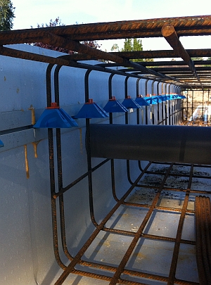 - geen wegvloeiend beton doordat er een messing-groefaansluiting bij de bodemplaat en de zijwand is aangebracht