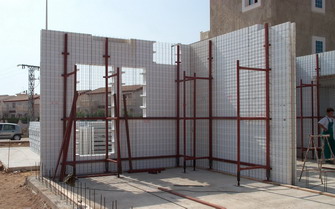De driedimensionale draadroosters van Phoenix zijn aan de binnenzijden voorzien van bijvoorbeeld 6 cm dik polystyreenplaat waartussen de betonnen wand gestort wordt.