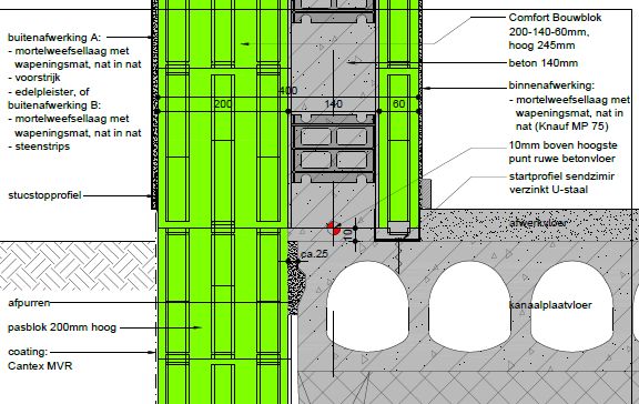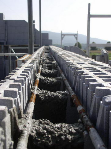 Op locatie wordt de holle wand voorzien van wapening voor hechting met de vloer en het plafond om een monoliete constructie te verkrijgen, waarna de holle wand met beton wordt volgestort. Voegen worden hierdoor tot een minimum beperkt waardoor deze methode vaak wordt toegepast bij kelders e.d.