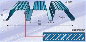 Een ander type verloren bekisting voor de staalplaatbetonvloer 88BV-618. Het profiel 88BV-618 is een multifunctionele oplossing als het gaat om een zo goed als overal toepasbaar alternatief voor betonvloeren. In de functie van verloren bekisting is dit profiel veel gebruikt. Tevens gebruikt men deze plaat als (onder)bewapening van de betonvloer, gevolg is dat een licht bewapeningsnet boven in de vloer al voldoet. Aan de hand van de te maken overspanning wordt bezien welke onderstempeling vereist is. De te maken staalplaatconstructie is van toepassing op verschillende draaghoutconstructies, zoals (prefab) betonbalken, metselwerk en uiteraard stalen (hoed)liggers. Met deze toepassing, zonder extra voorzieningen, is een brandvertraging van ten minste 30 minuten haalbaar.