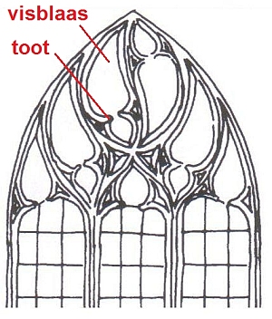van een kerkraam vaak het visblaasmotief toegepast (de visblaas is een