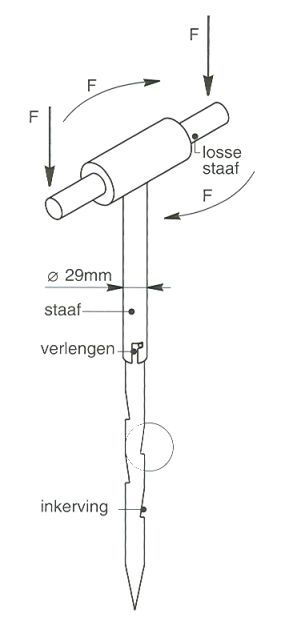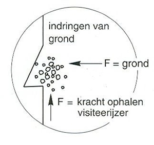 detail van het visiteerijzer (bij een inkerving) en de verzamelde grond: ![]() |
