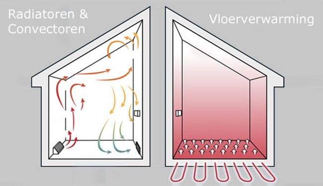 - De  luchtkwaliteit is beter: door de spreiding van de warmte over de vloer en de lagere temperatuur heb je minder stroming van lucht in huis (er zijn geen zeer hete radiatoren, er wervelt minder stof vanaf de stofvangende radiatoren of convectorputten).