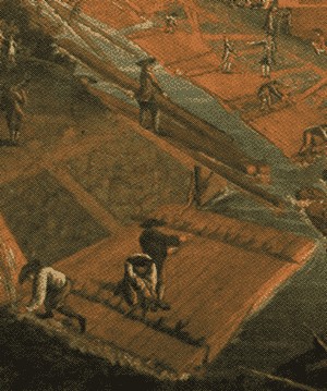 vlotpluggen; "wijze waarop wilgentenen en spie in het hout werden aangbracht" (oospronkelijke tekening dik de roon, uit historisch hout in amsterdamse monumenten, bma amsterdam) ![]() |