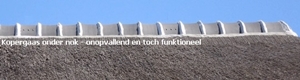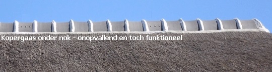 kopergaas bij de nok van een rieten dak voorkomt dat vogels het riet daar lostrekken; klik voor groter (riethandel prosman): ![]() |