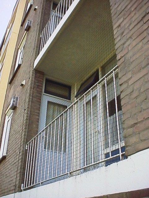 vogelwering door horizontaal gespannen metalen draden iets boven de favoriete zitplaatsen van vogels; klik voor de volledige afbeelding (foto joostdevree): ![]() |
