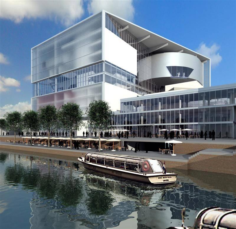 voorbeelden van de uitgebreide tekeningen uit het voorlopig ontwerp van het muziekpaleis in utrecht: voorontwerp, artist impression, muziekpaleis utrecht: ![]() |