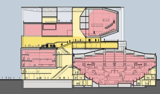 voorontwerp, doorsnede, muziekpaleis utrecht (noordzijde): ![]() |