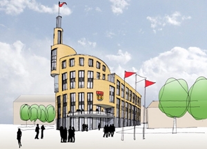 voorontwerp, schets gemeentehuis beverwijk: ![]() |